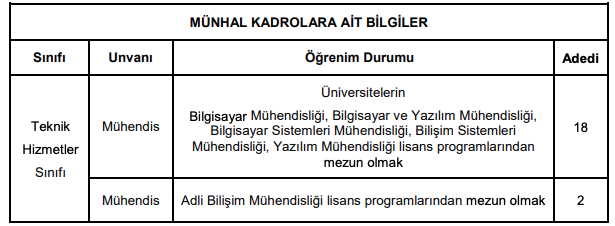 - Üniversitelerin yukarıdaki tabloda belirtilen lisans düzeyindeki ilgili bölümlerinden veya bu