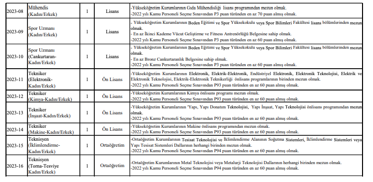 -Lisans mezunları için 2022-KPSS grubu KPSS P3, ön lisans mezunları için KPSS P93, ortaöğretim mezunları için ise KPSS P94 puanına sahip olması,