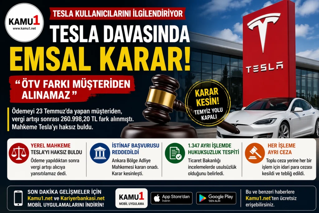 Tesla’dan araç satın alan bir müşterinin açtığı davada mahkeme, ödeme sonrası oluşan vergi farkının tüketiciye yansıtılamayacağına hükmetti.