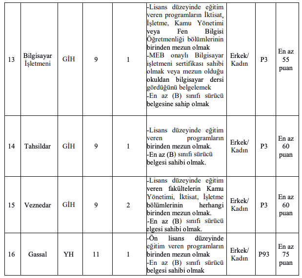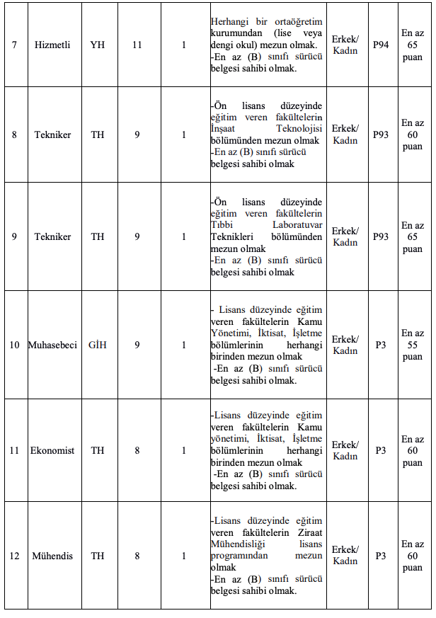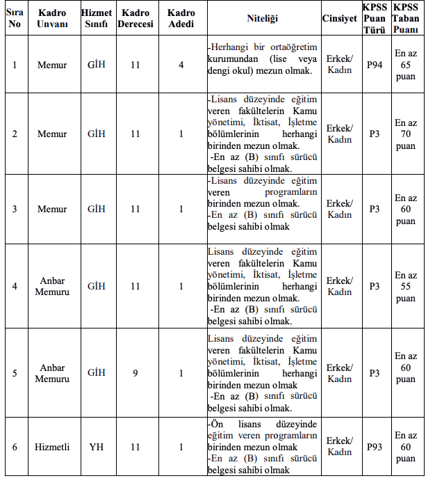 a) İlan edilen unvanlar için mezun olunan okul itibari ile öğrenim şartını taşımak ve bu öğrenimle