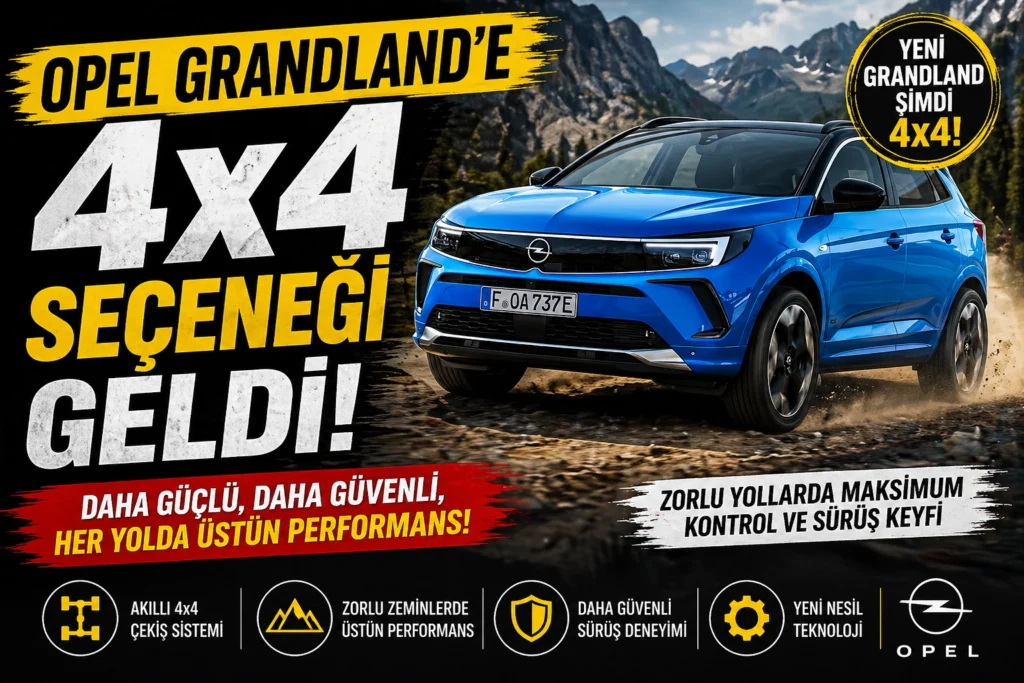 Alman otomotiv devi Opel, C-SUV segmentindeki popüler modeli Grandland’in elektrikli versiyonuna heyecan verici bir güncelleme getirdi. Markanın ilk dört tekerlekten çekişli (AWD) ve tamamen elektrikli modeli olma unvanını taşıyan yeni Grandland Elektrik AWD, yüksek performansı ve yeni teknolojileriyle Türkiye pazarında boy göstermeye başladı.